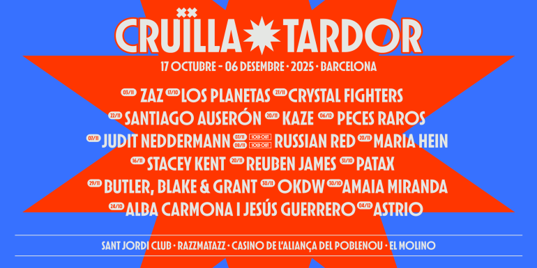 La tardor barcelonina ja té banda sonora: el Cruïlla Tardor torna del 17 d’octubre al 6 de desembre amb una quinzena de concerts repartits per quatre sales emblemàtiques de la ciutat, algunes al nostre districte (Sant Jordi Club, El Molino, Razzmatazz i el Casino de l’Aliança del Poblenou). El cicle, que ja s’ha consolidat com una cita imprescindible per als amants de la música en directe, combina noms internacionals de gran trajectòria amb propostes emergents i artistes de casa nostra, i ofereix una programació diversa i atrevida.