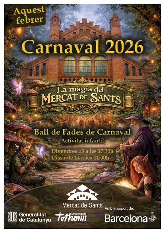 El Mercat de Sants s’afegeix a la programació del Carnaval 2026 amb una proposta adreçada principalment al públic familiar: el “Ball de Fades de Carnaval”, una activitat infantil emmarcada sota el lema “La màgia del Mercat de Sants”. La iniciativa forma part de les activitats de Carnaval al barri de Sants i es presenta com una proposta lúdica amb estètica fantàstica, pensada per apropar la festa als infants i a les famílies.
