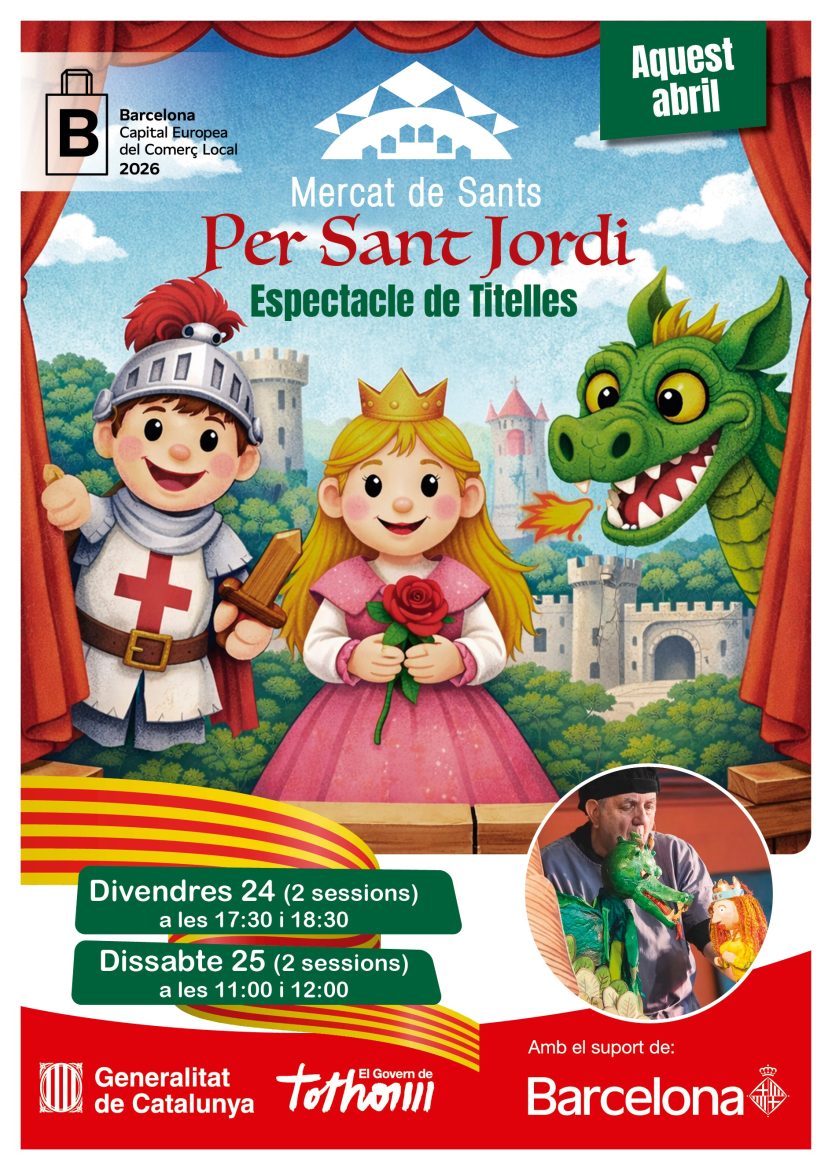El Mercat de Sants acollirà un espectacle de titelles per Sant Jordi amb quatre sessions programades entre el divendres 24 i el dissabte 25 d'abril. La proposta cultural, emmarcada en les activitats de la diada al barri, ofereix dues sessions divendres a les 17:30 i 18:30 h, i dues més dissabte al matí a les 11:00 i 12:00 h. L'espectacle compta amb el suport de la Generalitat de Catalunya, El […]