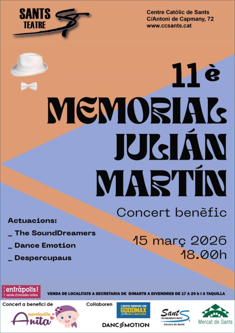 El Mercat de Sants organitza el 10è Concert de Cant Coral que tindrà lloc el diumenge 22 de març a les 18:00h al Sants Teatre del Centre, una aposta per la cultura comunitària i el teixit associatiu del barri dins de la programació de Barcelona Capital Europea del Comerç Local 2026. L'acte comptarà amb les actuacions de la Coral Estel del CCSants i la Coral Sant Medir, que oferiran un […]