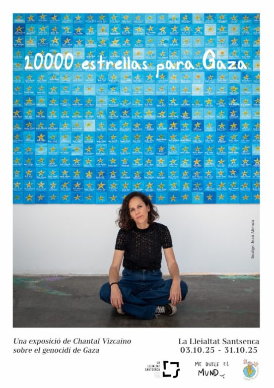 La Lleialtat Santsenca acull aquest mes d’octubre l’exposició “20.000 estrelles per Gaza”, una proposta artística de la il·lustradora i activista Chantal Vizcaíno que vol retre homenatge a les víctimes palestines i denunciar la situació que viu la Franja de Gaza. La mostra es podrà visitar gratuïtament a l’Atri de la Lleialtat entre el 3 i el 31 d’octubre.