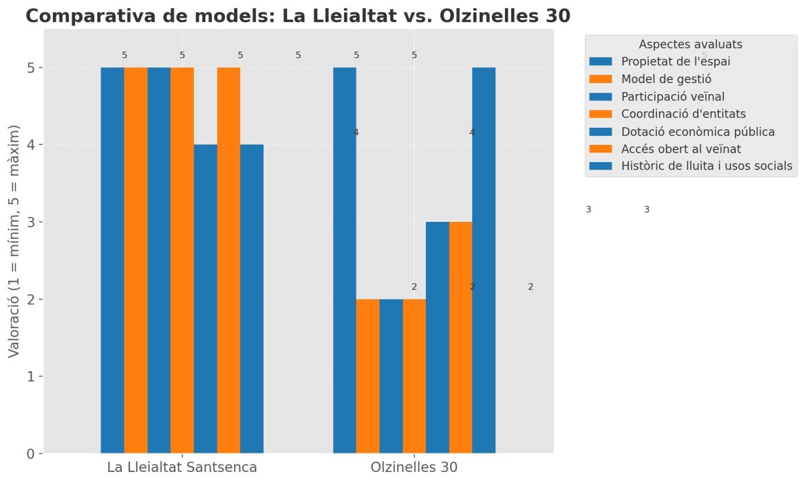 Comparativa basada en criteris de gestió cívica, participació veïnal i usos comunitaris. La Lleialtat representa un model consolidat de cogestió amb suport municipal. La proposta per a Olzinelles 30, segons les entitats, encara no garanteix aquests elements clau. El debat al voltant de la gestió de l’edifici d’Olzinelles 30 se situa en un context més ampli sobre com s’han de governar els espais públics amb vocació comunitària. En aquest […]