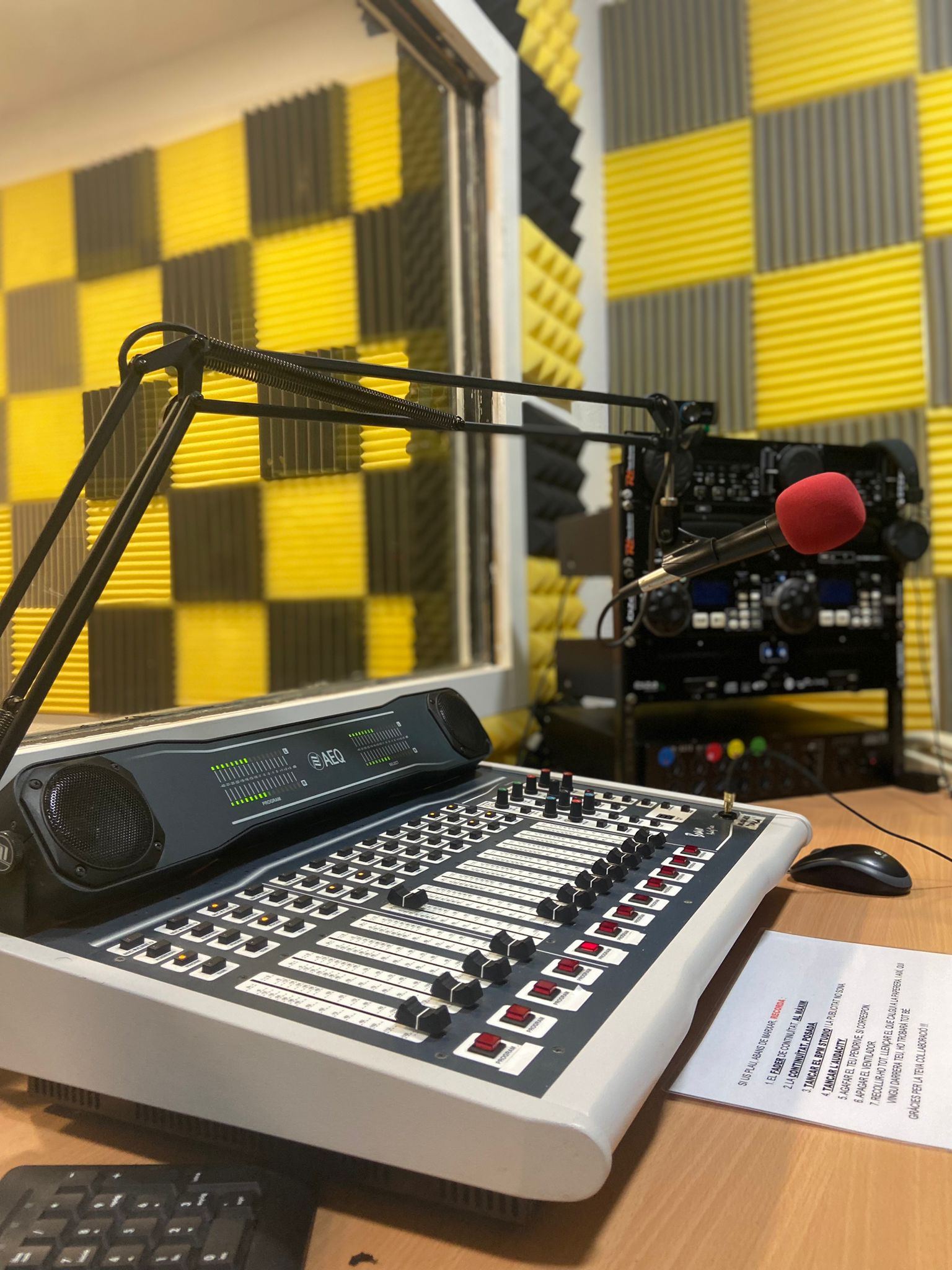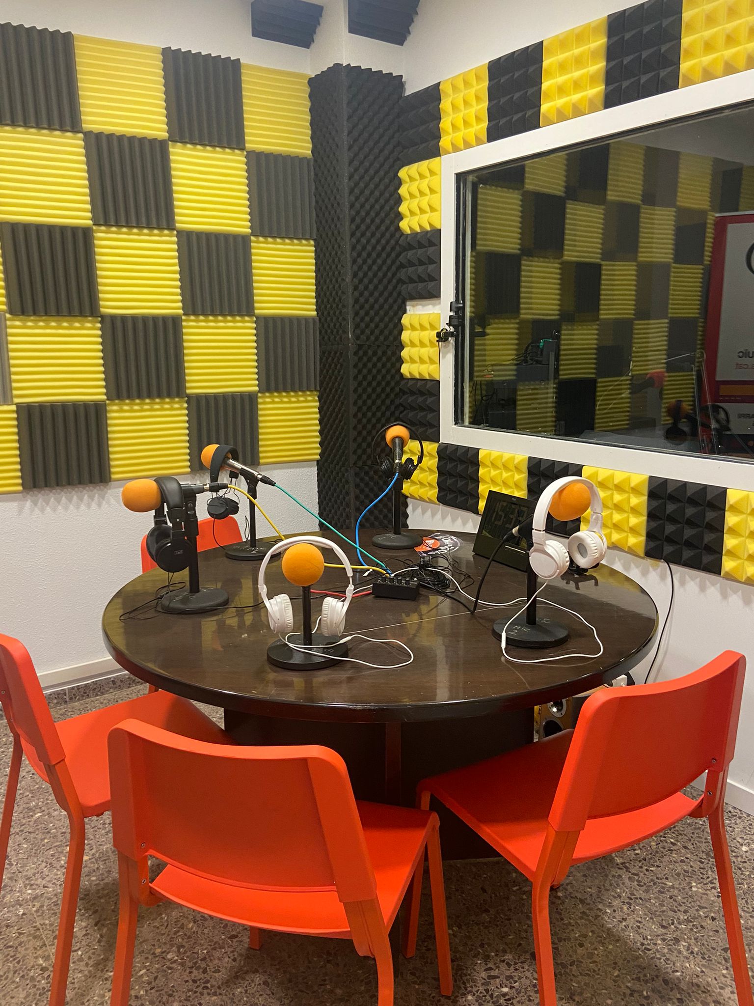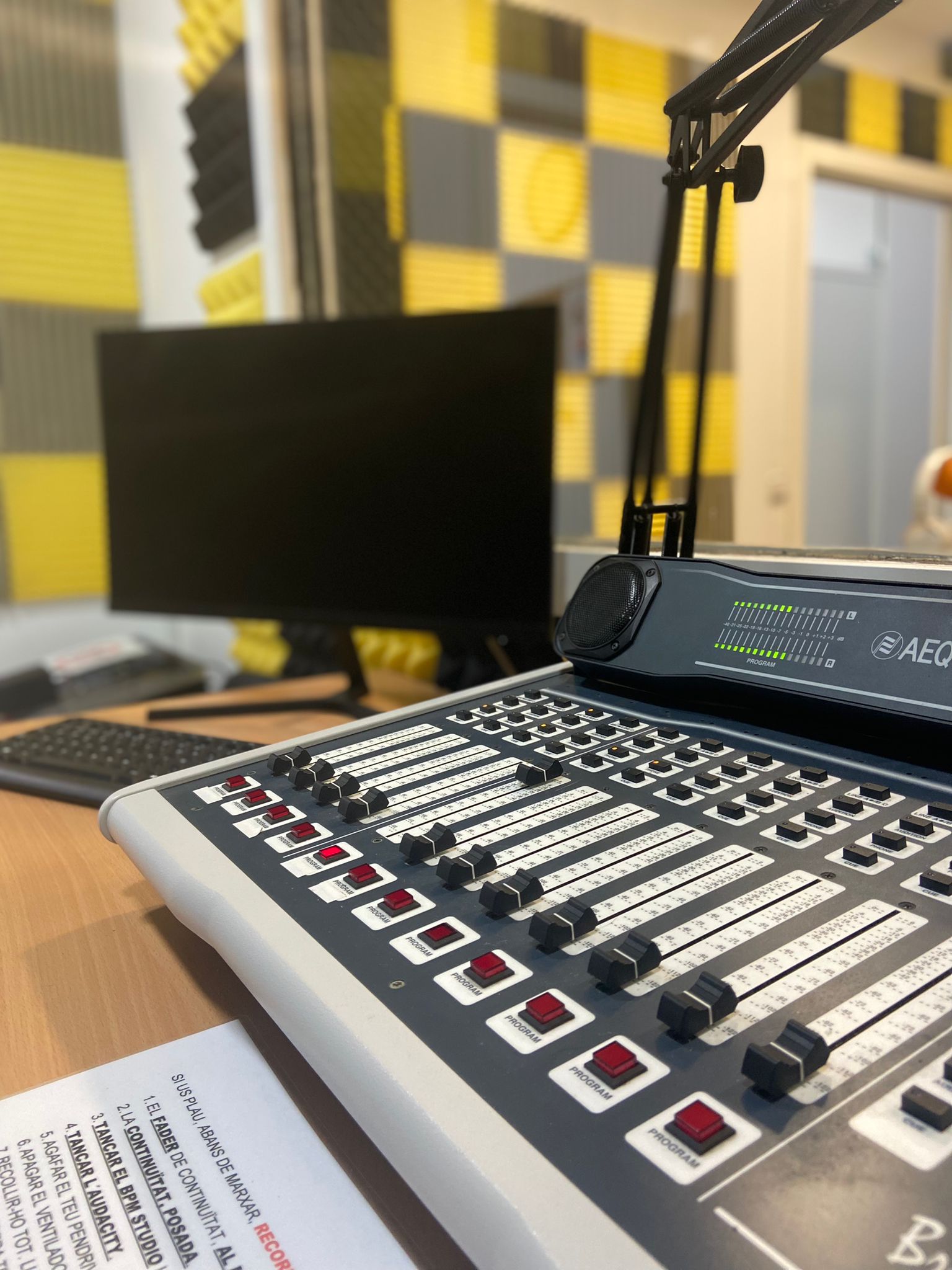 L’estudi de directe es divideix en un locutori amb taula rodona, 5 micròfons SHURE SM 58 i SM 48 amb un mesclador independent amb compressor, i un distribuïdor d’auriculars Behringer.Hi ha espai per a posar-hi fins a 2 micròfons addicionals i per a públic a la mateixa sala. Està insonoritzat i disposa de portes especials amb llana de roca interior, que a més actuen com tallafocs.